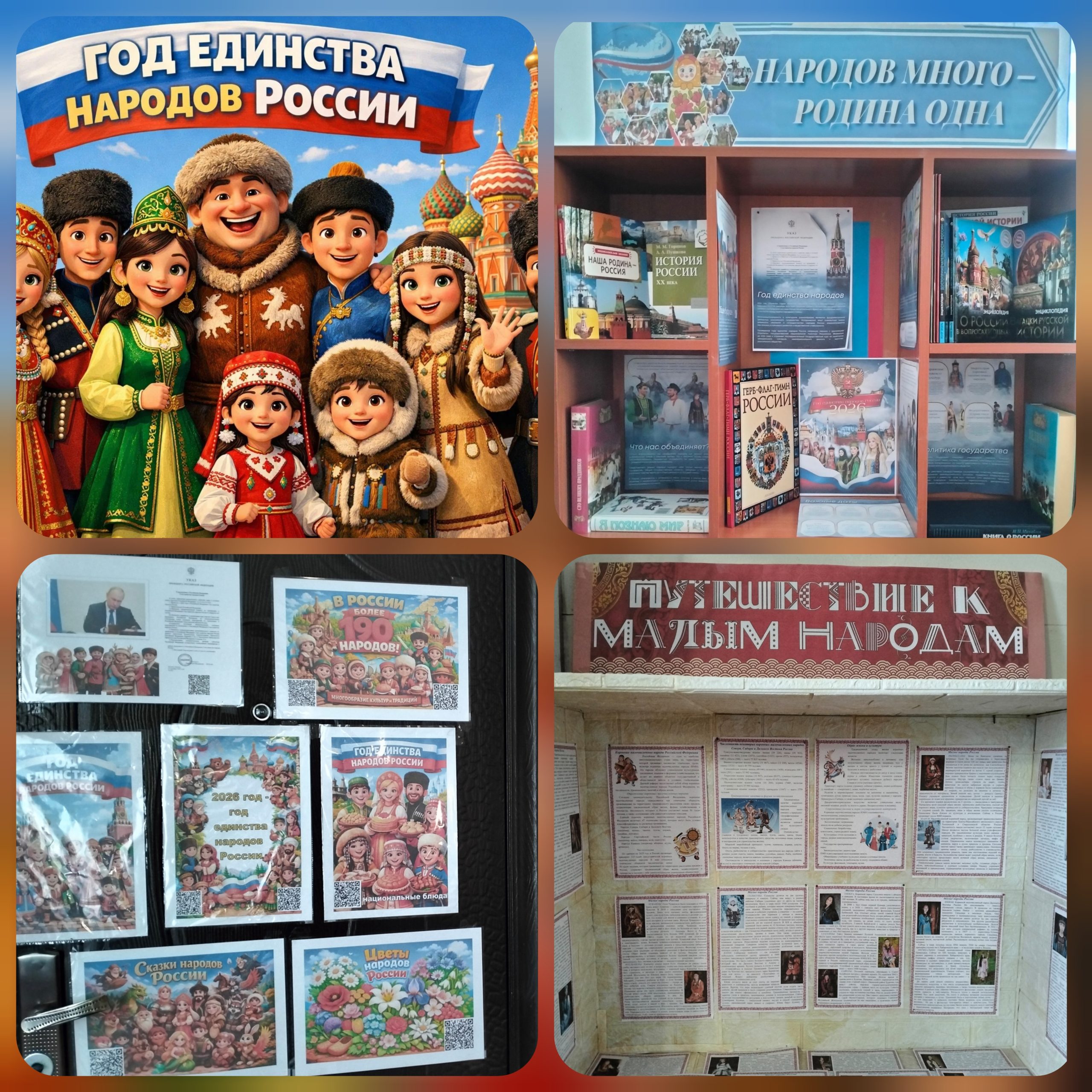 2026 год объявлен Указом президента годом Единства народов России, цель которого — укрепить дружбу, взаимопонимание и сплочённость между всеми народами страны. В нашей библиотеке оформлена выставка и информационные стенды которые включают различные разделы посвященные теме года.